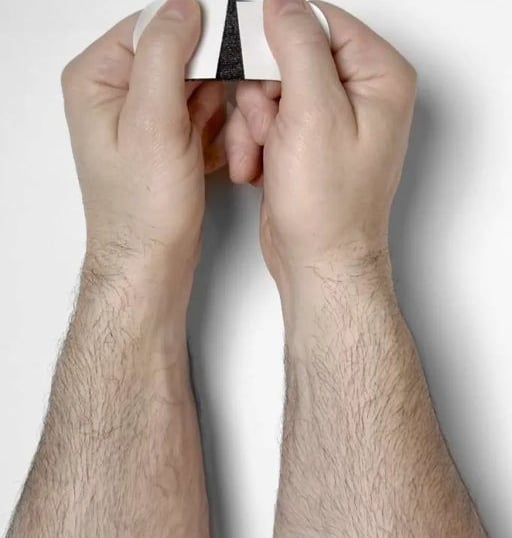 Desconecte los lados de la tira para separar el respaldo y exponer el adhesivo